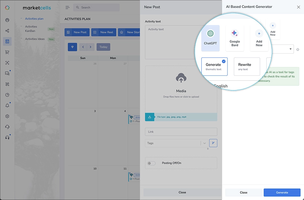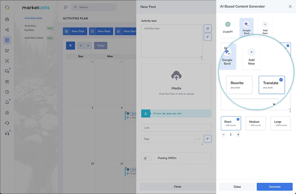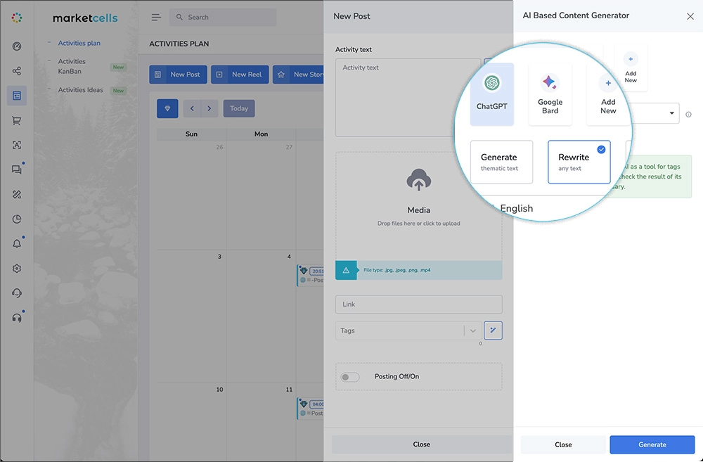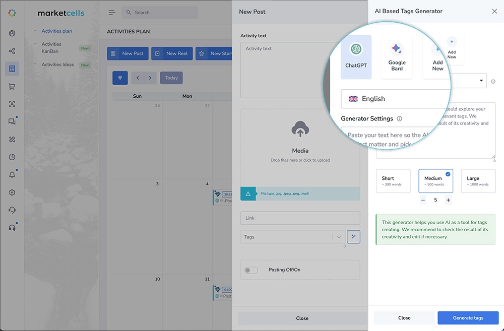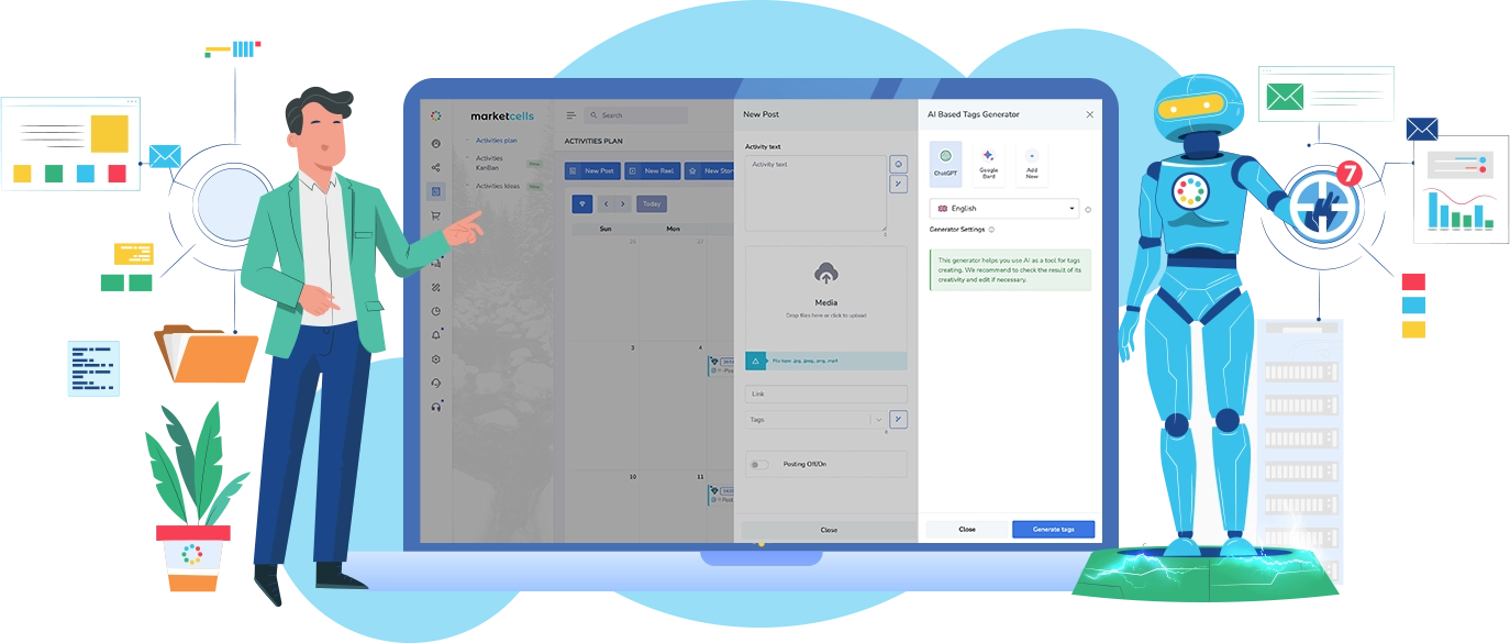 Since you connected to Marketcells, five of the most popular AI-advantaged tools for marketers, sellers, bloggers and businesses are available